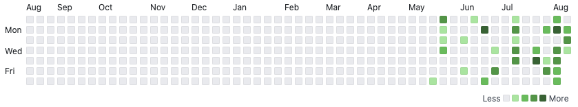 Four differnt front end framework repos, each a similar app, all hosted on free services. 3-5 commits a week for past few months.